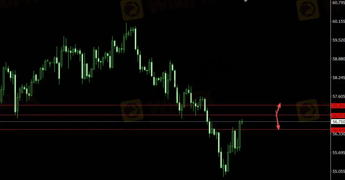 美元指数受支撑,原油反弹,关注支撑位56.480,4小时看多至57.310;关注压力位56.970,4小时看空至56.290。