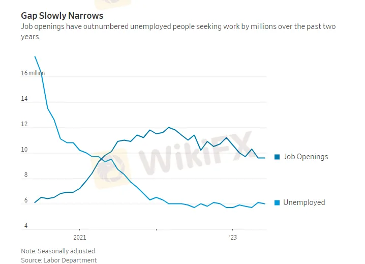 美国劳动力市场出现了新的缓和迹象,就业机会的缓慢减少进一步表明,美联储在给经济降温和降低通胀方面正在取得进展。