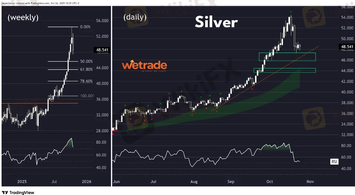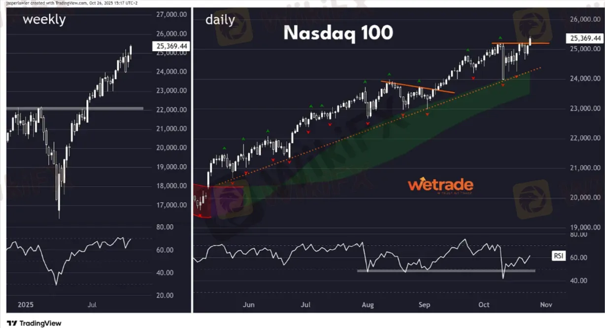 摘要:技术分析:2025年第43周(白银/美元 | 纳斯达克指数 | 欧元/日元)欢迎阅读由 WeTrade 联合 Trading Writers 推出的每周市场洞察。欢迎阅读本周市场展望,为您提供清晰、可操作的真知灼见,助您把握市场先机。报告分为两部分:周度前瞻 —— 概述当前市场状况,预览未来一周动态。技术分析 —— 本周我们首选的3个交易构想,附图表及关键价位。周度前瞻📅 2025年10月28日