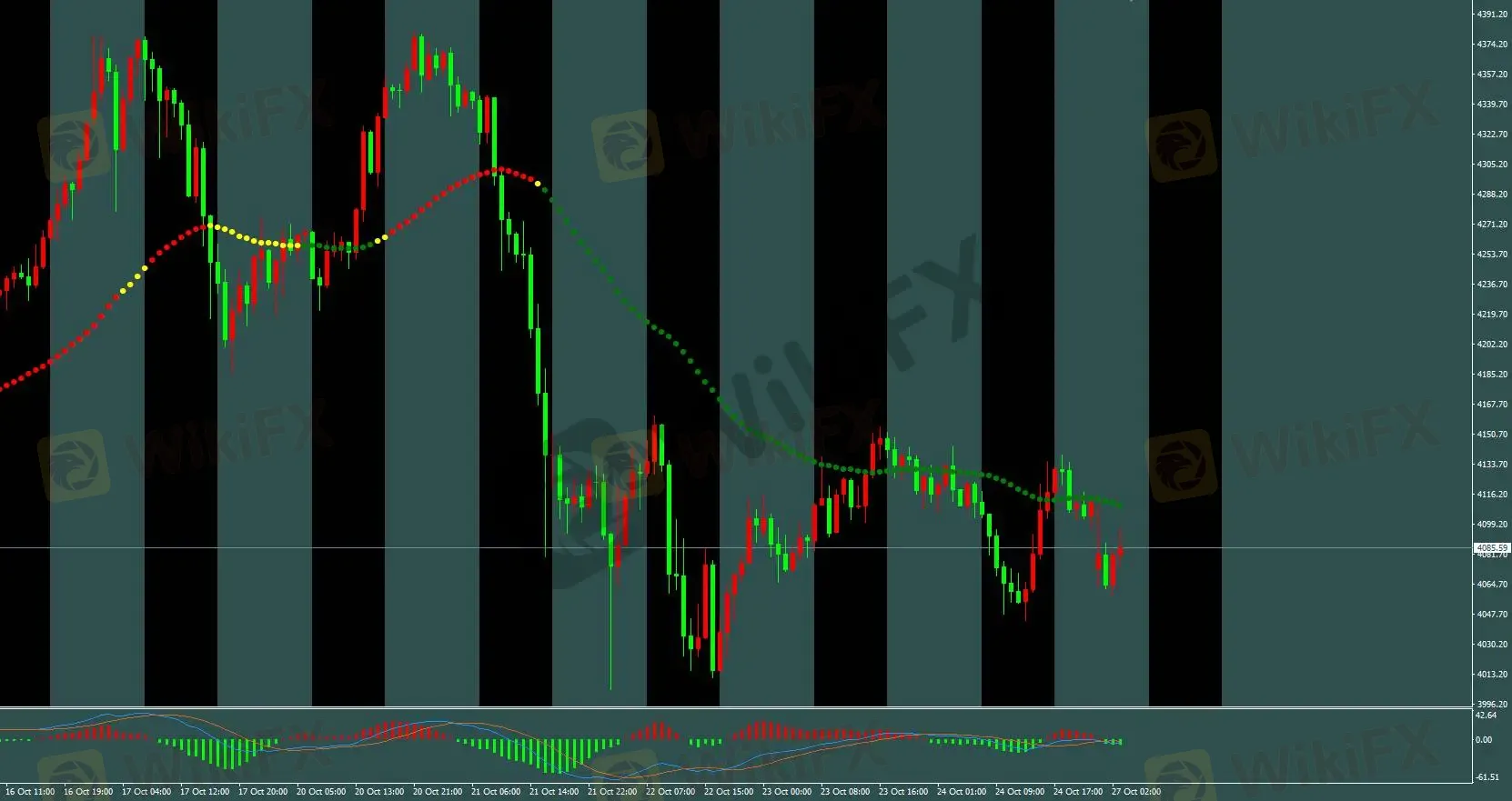 三色线策略:绿色持空,H1空单4134入场已盈利150点出场。今日继续用M5模型操作,趋势线转红即平仓。