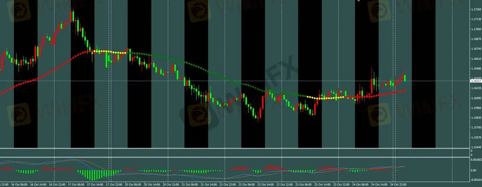 三色线策略:红色持多,H1多单1.161入场,止损1.154,目标上浮60点。变绿即平仓。