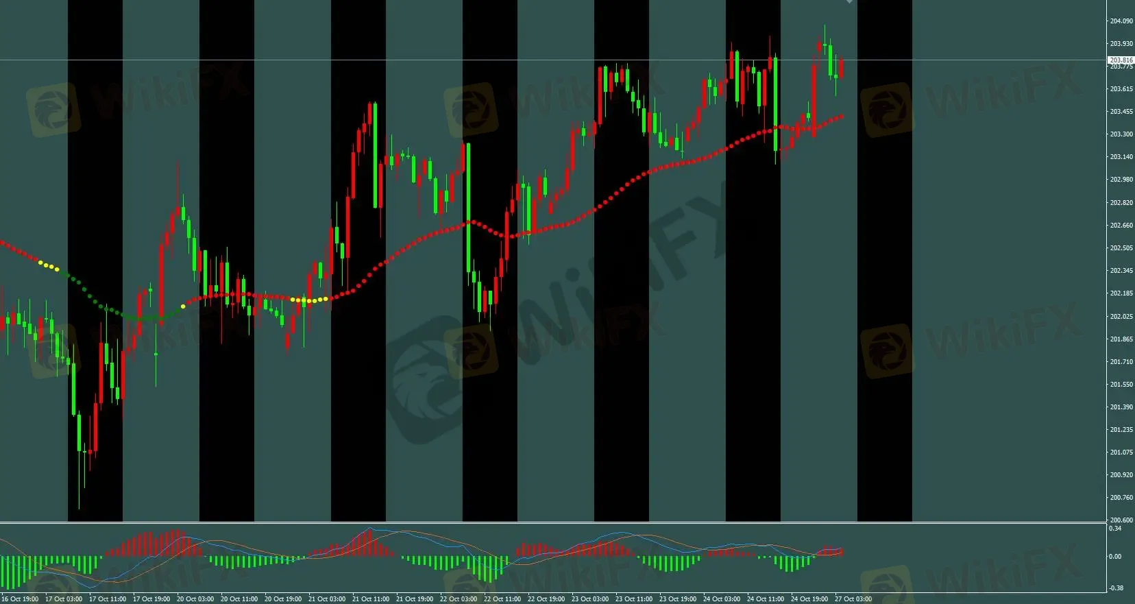 昨日回顾与ETO Markets观点:周五M5模型首波多单盈利。行情亚盘突破上周高位至204,美盘冲高后回落至203反弹,日线收倒锤阳线。周线仍具上行空间,但日线动能减弱。