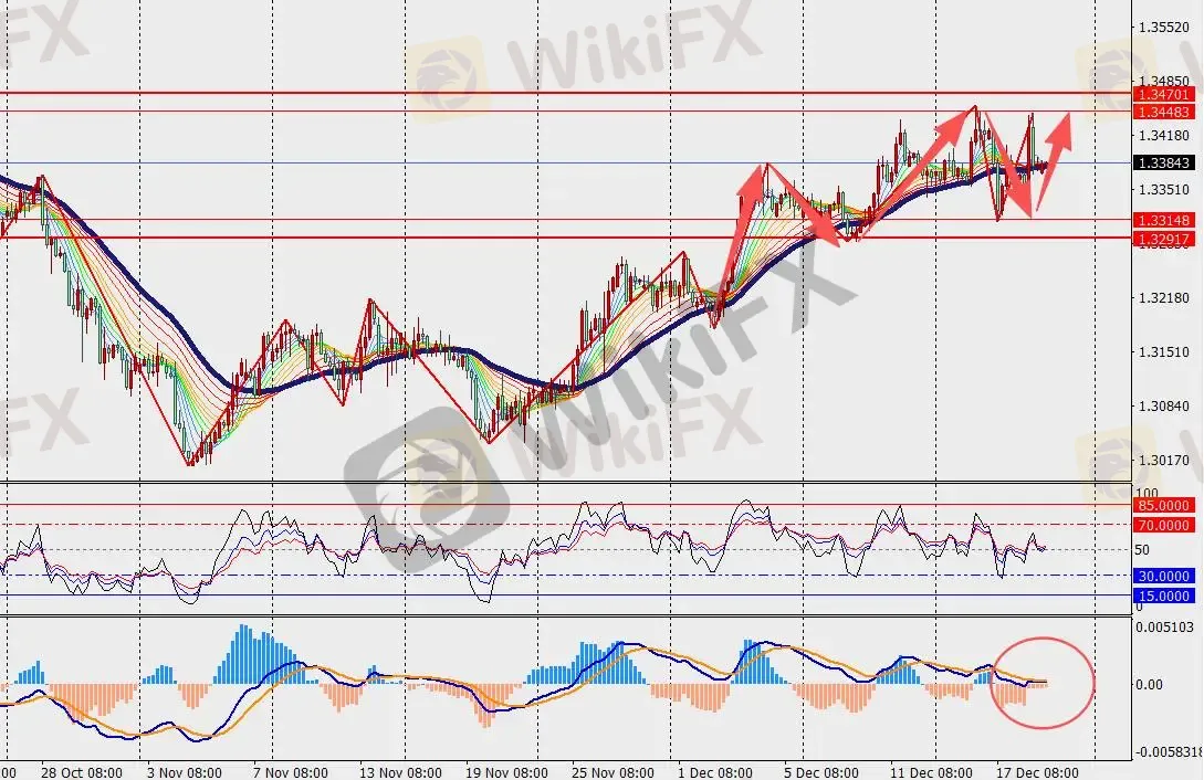 第一阻力位:1.3440 第一支撑位:1.3330
