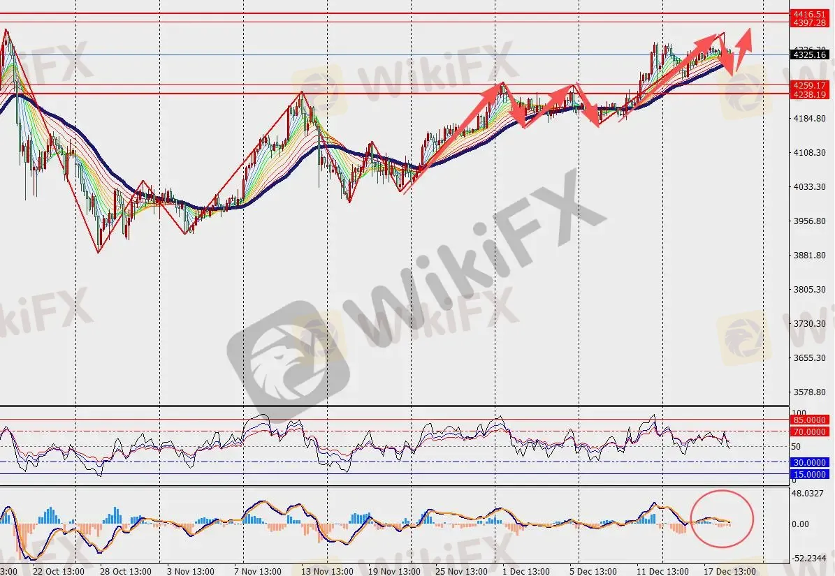 第一阻力位:4340.00 第一支撑位:4306.00