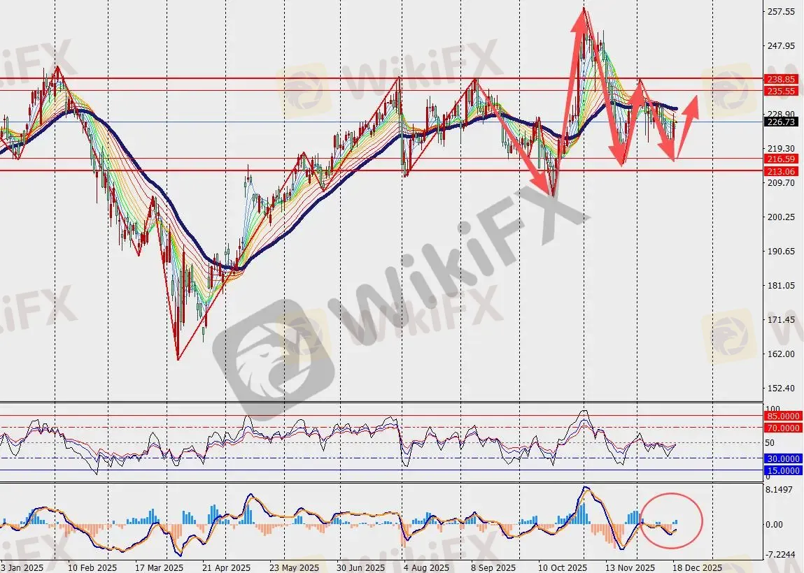 第一阻力位:237.00 第一支撑位:215.00