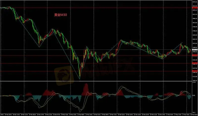 M30图表金价日内逢低买入操作,下方重要支撑位4400,目标4500和4600。