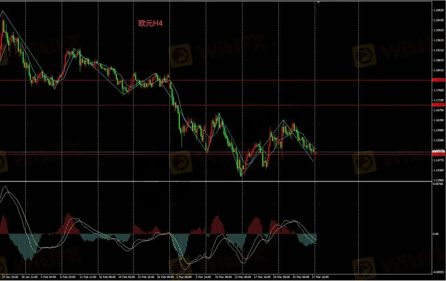 H4图表汇价再次关注1.15附近的变动;如若在此处企稳收起,则可轻仓入场做多,但当日下跌笔结束信号不明确,日内谨慎做多。