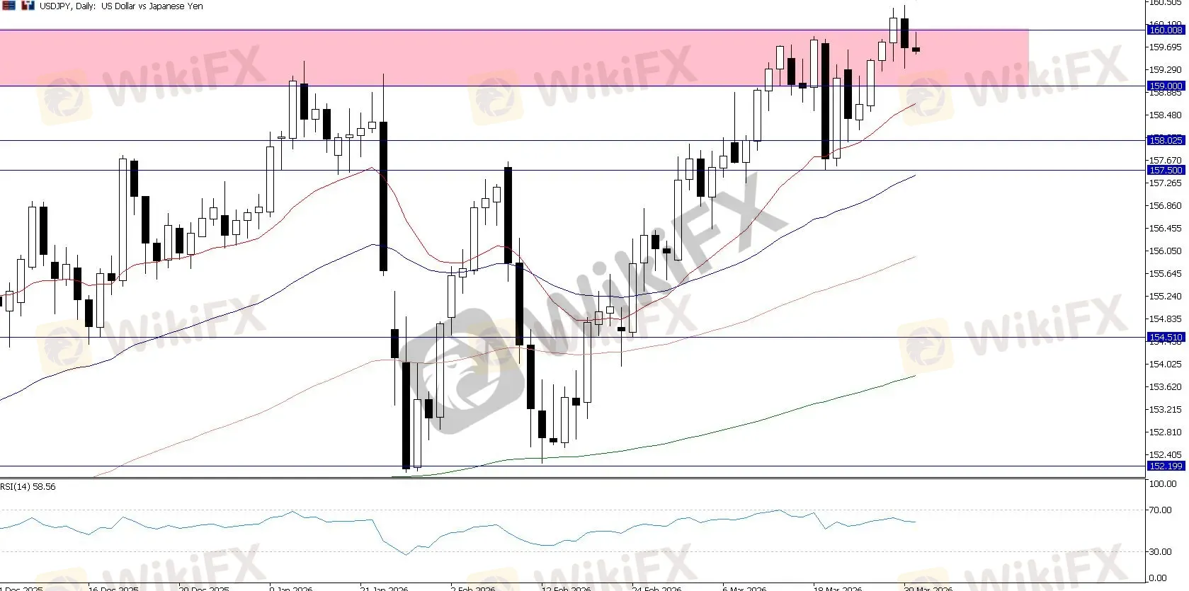 日本央行 (BoJ) 在这些极端高位进行突然、单方面外汇干预的风险 处于绝对的最高点。160.00 区域仍然是一个高风险的干预危险区。