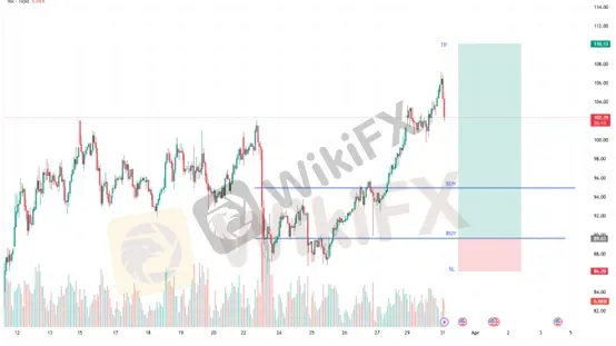 基本面消息,中东战事持续升级,特朗普一边释放谈判信号、一边继续对伊朗发出强硬威胁,霍尔木兹海峡和红海航运风险居高不下,推动原油价格大涨,市场对能源供应受扰和全球通胀再度升温的担忧明显加剧。与此同时,鲍威尔表态偏谨慎,称美联储短期可先观察油价冲击对经济的传导,这使得黄金在地缘避险与高利率压力之间反复博弈。