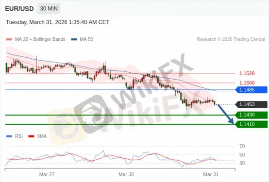 重点事件关注:法国3月CPI月率初值、德国3月季调后失业人数、德国3月季调后失业率、欧元区3月CPI年率初值、欧元区3月CPI月率初值。