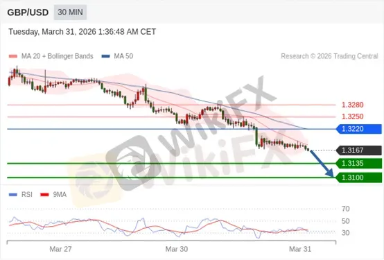 交易策略: 在 1.3220 之下,看跌,目标价位为 1.3135 ,然后为 1.3100。