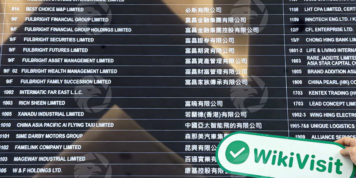 实勘人员来到一座气势恢宏的商业大厦前,凭借前期精心准备以及出色的沟通能力,顺利进入大楼并抵达指定的 9 楼。在大厦大堂的水牌上,清晰地标示着 9 楼是 “FULBRIGHT FINANCIAL GROUP LIMITED 富昌金融集团有限公司” 和 “FULBRIGHT FINANCIAL GROUP HOLDINGS LIMITED 富昌金融集团控股有限公司”,这无疑为实勘工作提供了重要线索。
