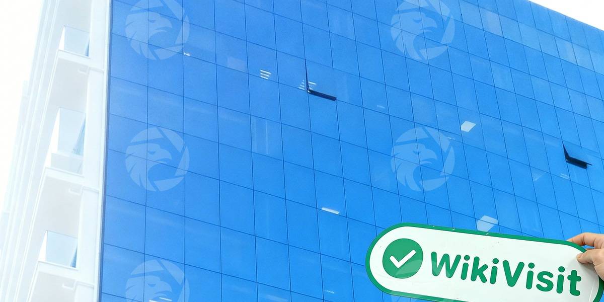 在Oktovriou St这条海滨大道上,实勘人员发现了一幢外立面是蓝色玻璃幕墙的高层建筑。