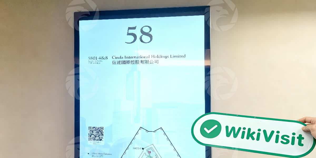 抵达目标楼层58楼后,实勘人员就能看到有这个公司的水牌,并发现Cinda International的办公区域有明显标识。由于未预约等原因,实勘人员未能进入内部。不过,实勘人员能拍到前台以及前台的LOGO,且该办公室并非共享办公室。